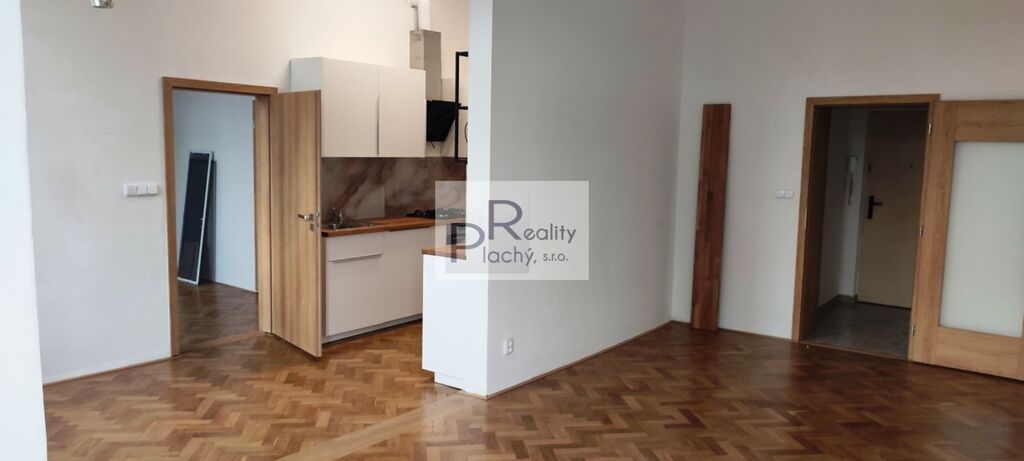 K pronájmu nabízíme nově zrenovovaný byt 2+kk v 1. patře bytového domu, postaveného za 1. republiky. Byt je kompletně zrekonstruovaný, včetně rozvodů elektřiny, plynu, vody a odpadů. Krásný, prostorný byt s vysokými stropy, má původní dubové parkety, nová okna, kuchyňskou linku s vestavnými spotřebiči, ledničku s mrazákem. Koupelna s toaletou, umyvadlem a sprchovým koutem má místo na pračku. Vytápění a ohřev vody zajišťuje plynový kotel.