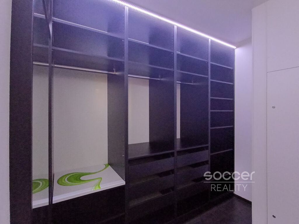 Součástí je kuchyňská linka s plynovou troubou, sporákem, mikrovlnkou a svítidly. Koupelna je vybavena rovnou vanou, toaleta je samostatná. Velkým bonusem je prostorná šatna, která poskytuje dostatek úložných prostor. K bytu náleží také uzamykatelný sklep (2 m²). Z lodžie se otevírá nádherný výhled na celou Prahu.