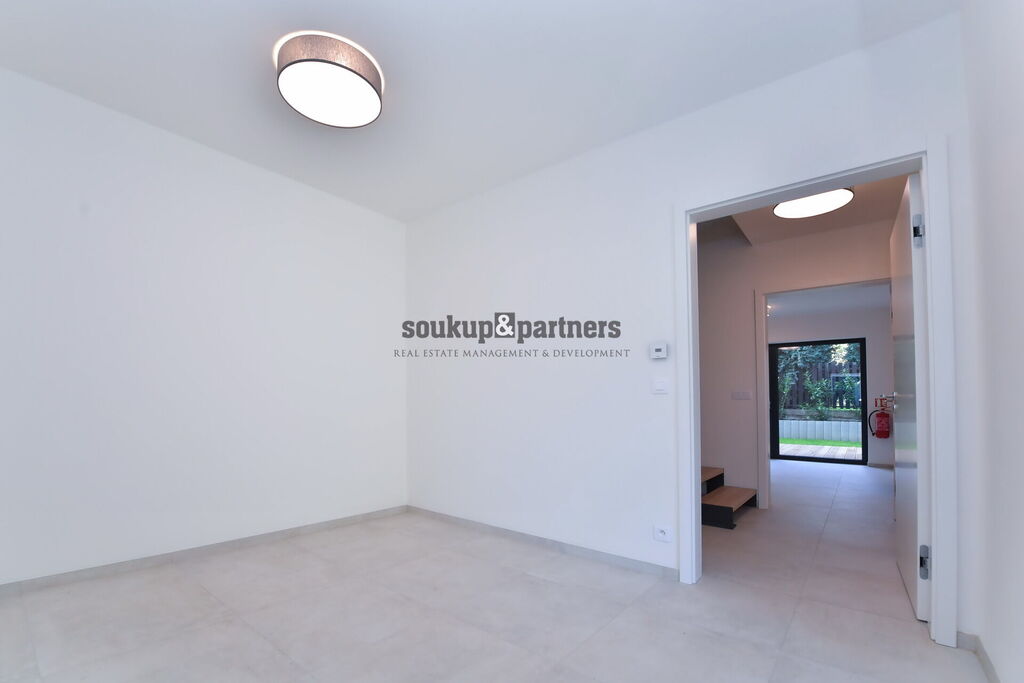 Novostavba ŘRD 7+kk + terasa + balkon + garáž a parkovací stání v domě - užitná plocha 220 m2, který se nachází na pozemku o celkové výměře 132 m2 v Praze 4 - Háje, přímo u Hostivařské přehrady s pláží a parkem. Jedná se o dosud neobývanou novostavbu kolaudovanou v roce 2025. V domě jsou 4 samostatné ložnice, 2 x koupelna se sprchovým koutem a vanou, 3x WC, obývací pokoj se vstupem na balkon, kuchyň s jídelnou, moderní kuchyňská linka s vestavěnými spotřebiči - lednice s mrazákem, myčka, horkovzdušná trouba, indukční varná deska, mikrovlnka, digestoř, prádelna, prostorná předsíň. Podlahové vytápění a teplou vodu zajišťuje vlastní tepelné čerpadlo. Okna jsou s izolačním 3 sklem (v 1.NP s bezpečnostním zasklením), na všech oknech předokenní žaluzie na dálkové ovládání, videotelefon v obou patrech, příprava na klimatizaci. V celém domě jsou použity pouze kvalitní a moderní materiály - na podlahách třívrstvé dřevěné dubové podlahy, dlažba, obklady, vypínače Schneider, veškeré zařizovací předměty jsou od firem Laufen, Grohe a Franke, datové zásuvky ve všech obytných místnostech. K domu přísluší zahrada s podzemní nádrží na dešťovou vodu, dřevěná venkovní terasa je z materiálu Thermowood s venkovní zásuvkou a nezámrzným kohoutem na vodu. Samostatný vjezd pouze pro rezidenty 5 RD přes závoru na dálkové ovládání. Poloha RD přímo u Hostivařské přehrady s pláží, volejbalovým hřištěm a parkem s cyklostezkami a tenisovými kurty zajišťuje sportovní vyžití pro každého vyznavače sportu. V docházkové vzdálenosti je stanice metra Háje, stanice autobusů, mnoho obchodů a restaurací, několik základních škol a školek, banky a zdravotní střediska. V tomto RD jste blízko krásné přírody, ale máte i veškeré vymoženosti moderního bydlení.