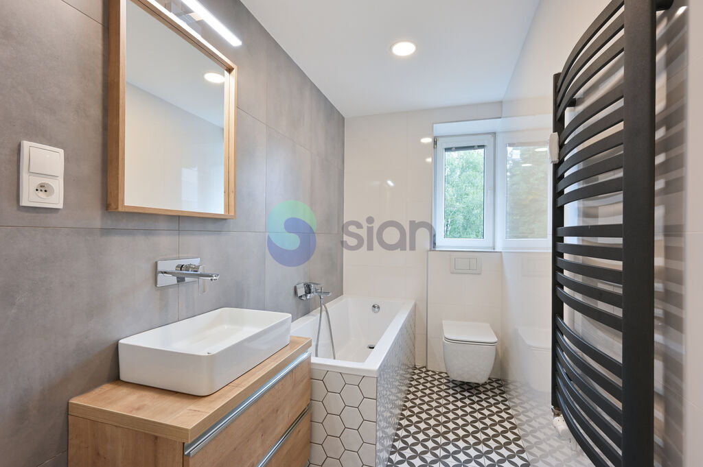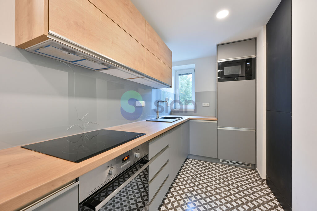 Byt prošel před pěti lety kompletní a vkusnou rekonstrukcí. Kuchyňská linka byla vyrobena na míru a je vybavena vestavěnými spotřebiči – elektrickou varnou deskou, troubou, myčkou, lednicí, mikrovlnnou troubou i granitovým dřezem. V koupelně je vana, topný žebřík a závěsná toaleta. V pokojích jsou plovoucí podlahy, v koupelně a kuchyni dlažba. Samozřejmostí jsou nové rozvody elektřiny v mědi, nové dveře. Ohřev vody zajištuje elektrický bojler.