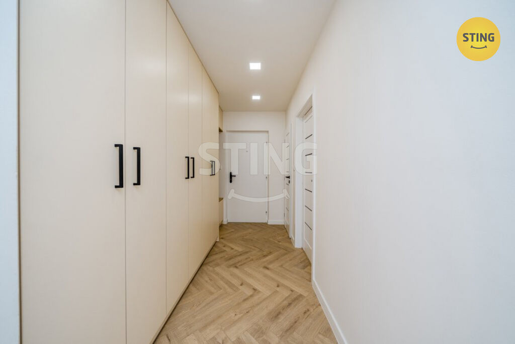 Byt prošel kompletní a důkladnou rekonstrukcí – od nových rozvodů elektřiny a vody až po podlahy, dveře, koupelnu i kuchyň. Kuchyňská linka je vybavena vestavnými spotřebiči a plynule navazuje na obývací část, která vytváří přirozené centrum bytu. Oba další pokoje jsou neprůchozí, což zajišťuje dostatek soukromí pro rodinu, pár i jednotlivce, kteří potřebují prostor pro práci z domova.