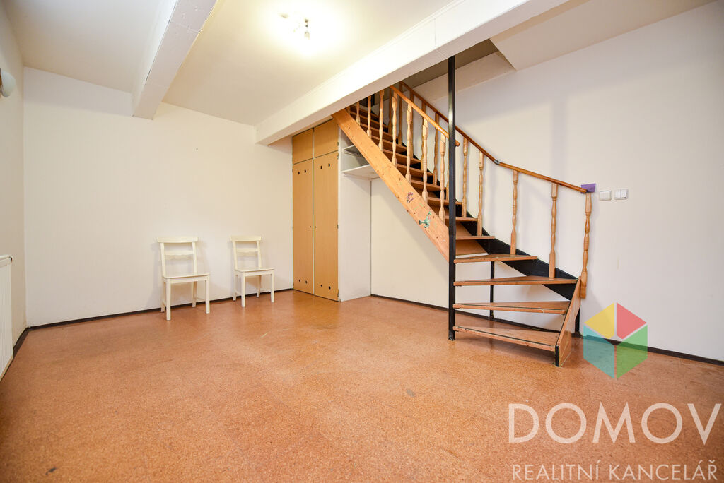Jedna z ložnic je umístěna v suterénu, kam se vstupuje po dřevěném schodišti přímo z bytu. Tento prostor může sloužit i jako šatna, domácí posilovna či pracovna.