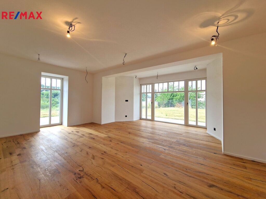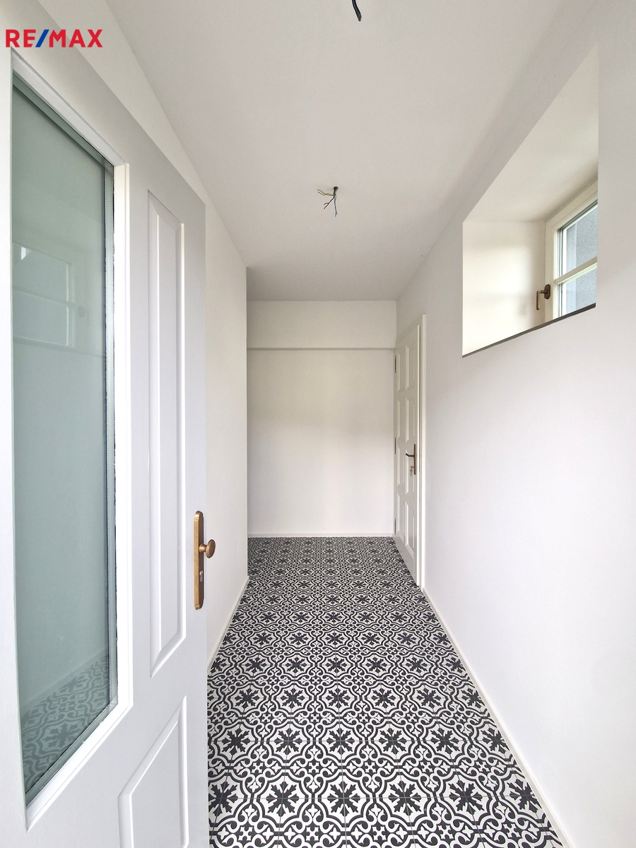 Vytápění zajišťuje tepelné čerpadlo (vzduch/voda), topení je podlahové. Okna a francouzské dveře na zahradu jsou dřevěná trojskla, repliky původních výplní. Dřevěné podlahy jsou z olejovaného dubu, interiérové dveře masiv, vyrobené na zakázku. Moderní a komfortní kuchyň je vybavená myčkou, ledničkou s mrazákem, elektrickou a mikrovlnou troubou, varnou deskou a dostatečným množstvím úložného prostoru.
