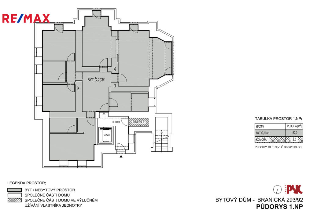 Byt o dispozici 3+1 tvoří hlavní obývací pokoj, kuchyň, 2x pokoj, hala, 2x koupelna, 3x šatna, technická místnost a sklad.
