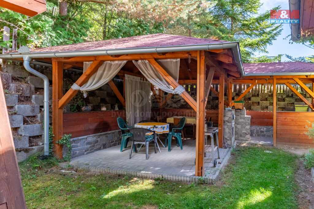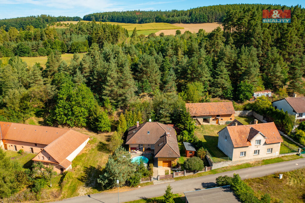 V přízemí domu najdete předsíň, šatnu, světlou kuchyni propojenou s obývacím pokojem, dva samostatné pokoje a koupelnu. V podkroví jsou další tři útulné pokoje, ideální jako ložnice či dětské pokoje. Vytápění je řešeno plynovým kotlem s ústředním topením, možností topení v krbových kamnech, v patře pak moderními infra panely. U domu je zastřešená terasa pro posezení s rodinou či přáteli. Voda je zajištěna z vlastní vrtané studny. Nemovitost se nachází v krásném a klidném prostředí, vhodném pro trvalé bydlení i rekreaci. Díky dispozici je dům ideální pro rodiny s dětmi, které hledají pohodlné a příjemné místo k životu v blízkosti přírody, a přesto s dobrou dostupností do Blatné. Více informací rádi poskytneme.