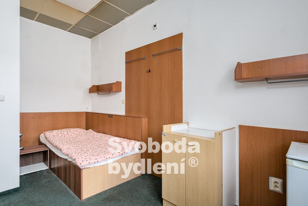 Celá budova má tvar písmene L. V části rovnoběžné s ulicí je možno zřídit penzion / ubytovnu. Jedná se o třípodlažní dům s částečným podsklepením. Zdivo je cihelné a smíšené (přízemí a sklep). Tato část byla průběžně renovována a nyní nabízí celkem 20 ubytovacích pokojů s cca 50 lůžky. Dále se zde nachází 5 kuchyní, 7 sociálních zařízení (koupelny a toalety) a dalších 5 místností v podobě skladů, recepce či učebny. Celková plocha této části stavby činí cca 618m2 plus půda cca 151m2 a sklep cca 122m2 (tj. celkem cca 891m2). Plocha 1.PP (sklep) činí cca 122m2, 1.NP má cca 236m2 ( plocha místností cca 81m2), 2. NP má celkovou plochu cca 251m2 (místnosti cca 166m2) a 3.NP disponuje celkovou plochou cca 282m2 (místnosti cca 86m2).