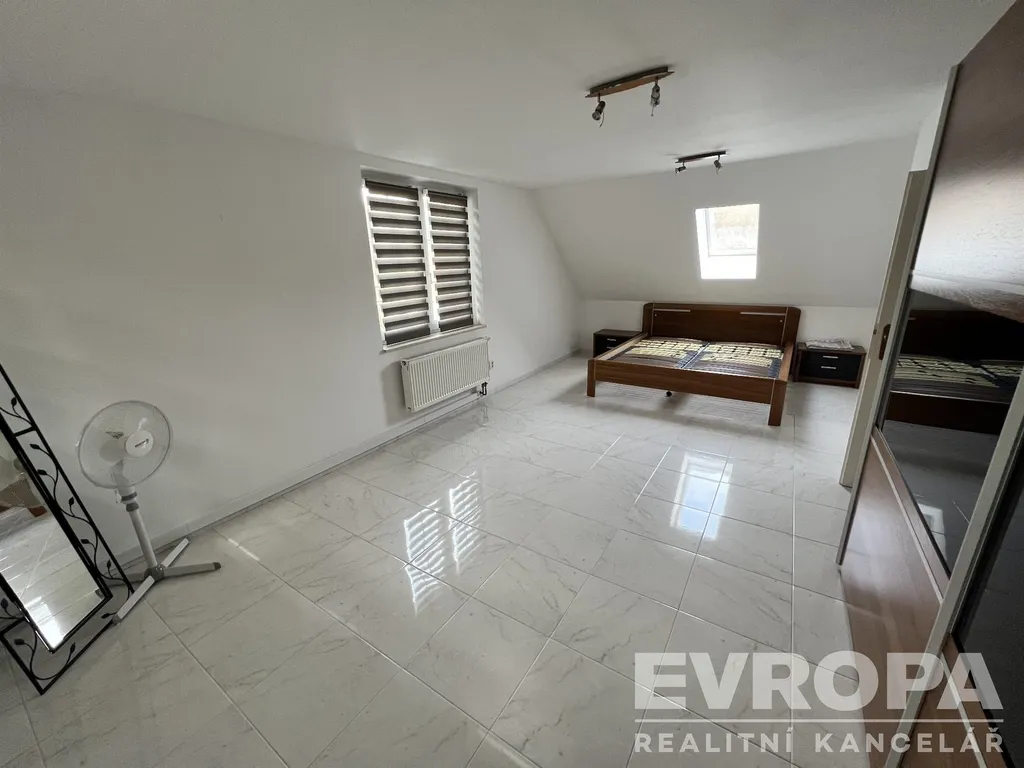 V patře domu jsou čtyři pokoje a jedna koupelna. Podlahy v celém domě jsou pokryty novou keramickou dlažbou.