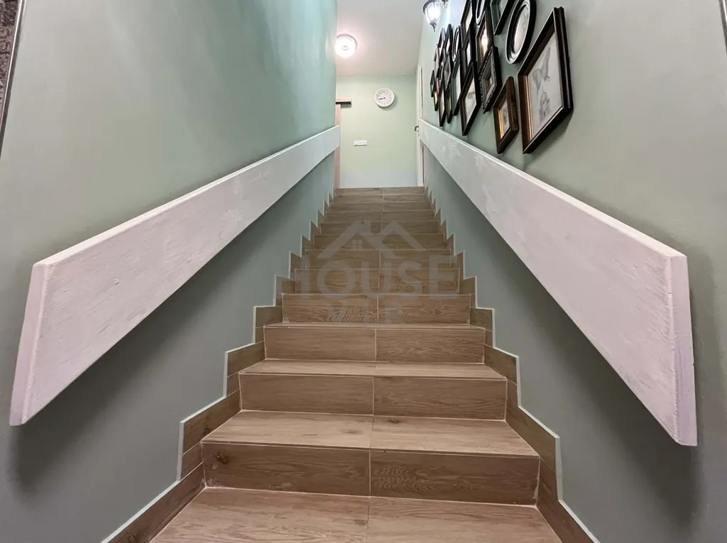 Horní patro: předsíň, další komora, koupelna, samostatná toaleta, plně vybavená kuchyně se spotřebiči Electrolux, Gorenje a Bosch, obývací pokoj propojitelný s kuchyní a dva další pokoje vhodné jako ložnice či pracovny. Každé patro má vlastní koupelnu a WC, ideální i pro dvougenerační bydlení.
