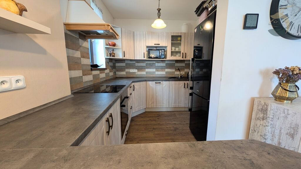 Dům o dispozici 4+1 nabízí obytnou podlahovou plochu 126,3 m². Celé přízemí domu prošlo kompletní rekonstrukcí a je připravené k okamžitému nastěhování. Dominantou je obývací pokoj s kuchyní o velikosti 41.5 m², dále jsou zde tři samostatné pokoje (20 m², 18,4 m² a v podkroví 15,4 m²), koupelna 4 m². Dispozice je promyšlená a praktická, ideální pro rodinný život.