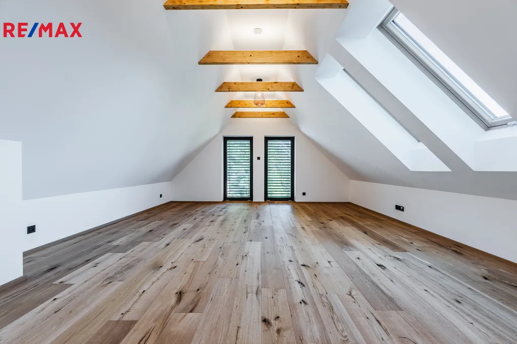 Patro: čtyři útulné ložnice + prostorná pracovna (43,8 m²) a koupelna