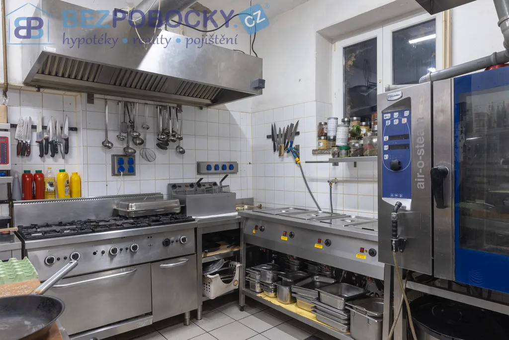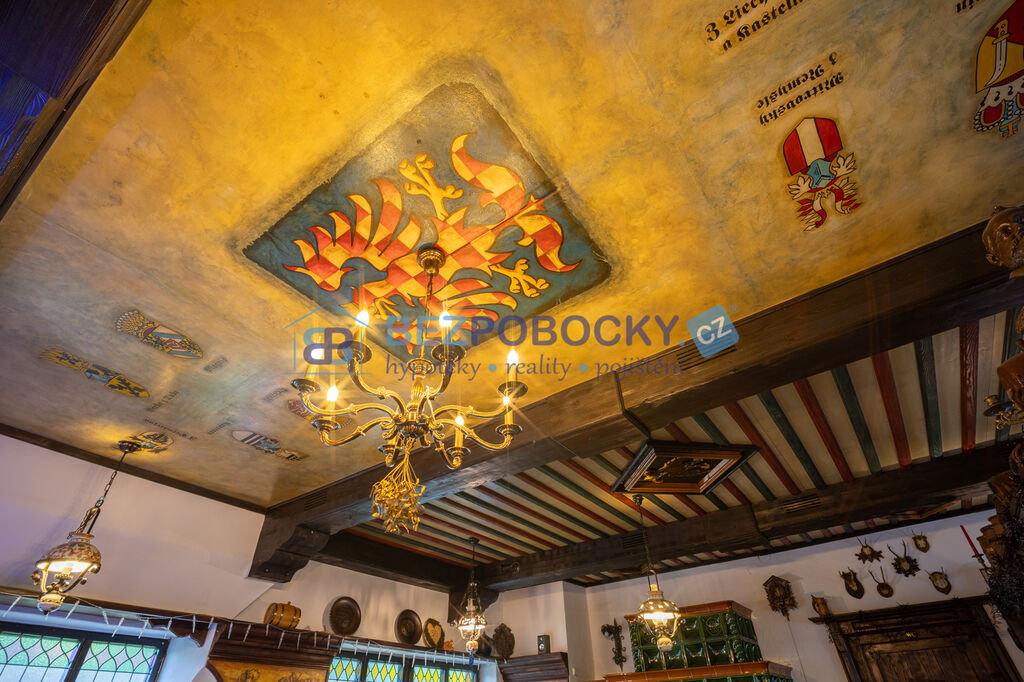 K hotelu patří také restaurace s kuchyní, recepcí a venkovním posezením a v podzemním podlaží prostorná stylová vinárna se samostatným vchodem a zázemím.