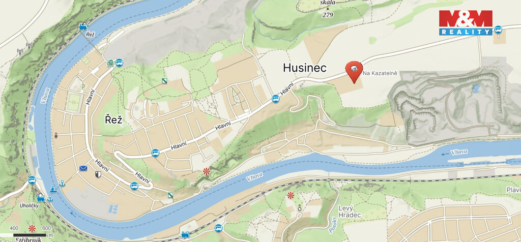 Pozemek je rovinatý, částečně oplocený a společně s ovocnými stromy tvoří ideální místo k odpočinku. Nachází se na kraji obce Husinec u Klecan, v klidné a zelené lokalitě.