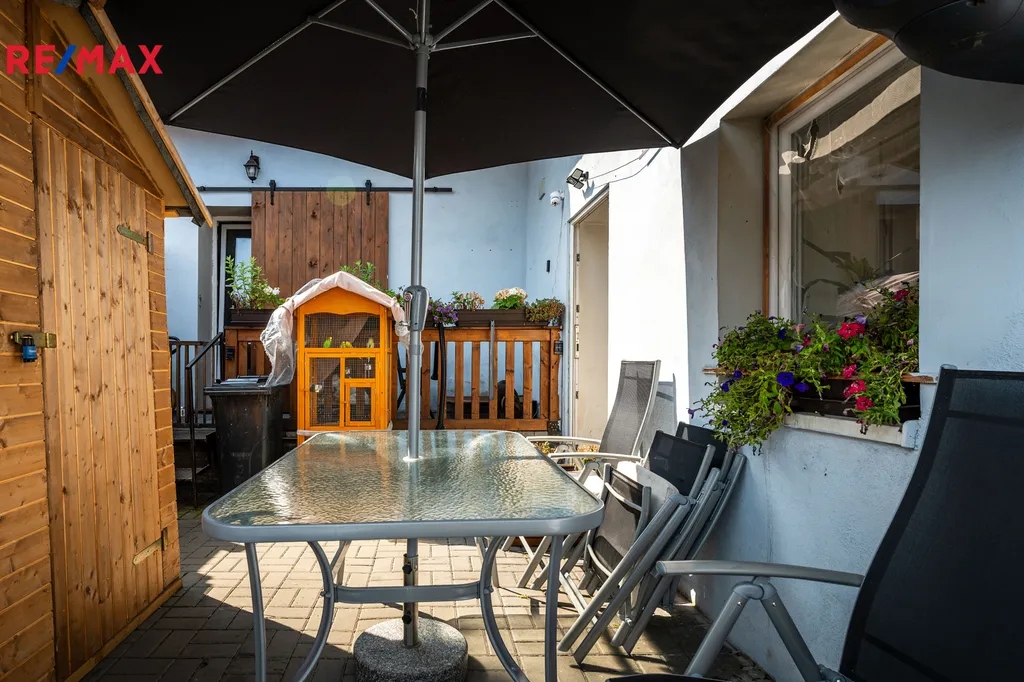 Rodinný dům o celkové zastavěné ploše 134 m2 je situován na uzavřeném pozemku 304 m2, na jehož ploše je umístěna i garáž. Stavba prošla rozsáhlou rekonstrukcí včetně střešní krytiny a je dispozičně řešena jako 3+kk. Interiér se skládá z prostorného obývacího pokoje, moderně zařízené kuchyně s ostrůvkem, dětského pokoje, koupelny se sprchovým koutem, samostatné toalety s technickým zázemím, ložnice a dlouhé chodby. Nemovitost je vkusně zařízena a působí velmi útulným dojmem. Dvůr domu je zcela oplocen a nabízí dostatečné soukromí.