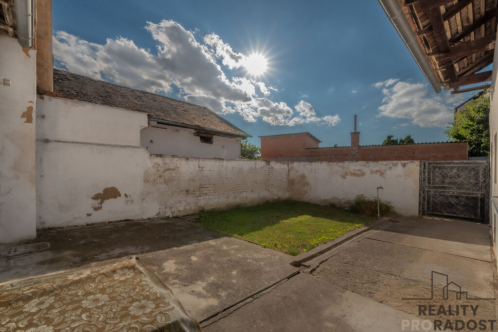 Na obytnou část navazuje místnost dříve využívána jako dílna. Za domem se nachází uzavřený dvůr, který lze přetvořit v útulnou zahrádku pro odpočinek nebo využít pro drobný chov hospodářských zvířat. Parkovaní je možné přimo před domem.