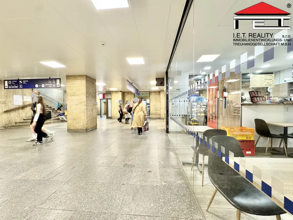 Jedná se o rohovou prosklenou kavárnu s posezením a výdejním oknem, která je umístěna na strategickém místě v silně frekventovaném průchodu k vlakovým nástupištím. Současný podnájemce prostory kompletně zrekonstruoval, vybavil a je ochoten přenechat dlouhodobou podnájemní smlouvu za aktuálních podmínek vč. kompletního vybavení kavárny za jednorázové odstupné.