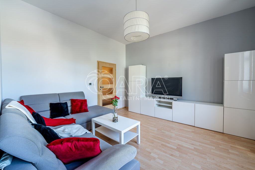 Dispozice bytu je ideální pro rodinu s dětmi. Kuchyně je vybavena moderními spotřebiči – myčkou, indukční deskou a horkovzdušnou troubou. V obývacím pokoji najdete pohodlnou rohovou sedačku a obývací stěnu, ložnice disponuje prostornými skříněmi. Dětské pokoje jsou vybaveny pohovkou na spaní a skříní. Výjimečným prvkem je centrální ventilace zabudovaná přímo v bytě, která zajišťuje zdravé a příjemné prostředí.