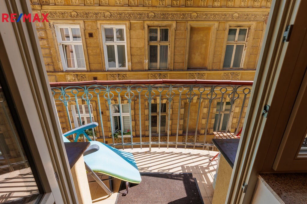 * Prostorný obývací pokoj s balkonem a plně vybavená kuchyně