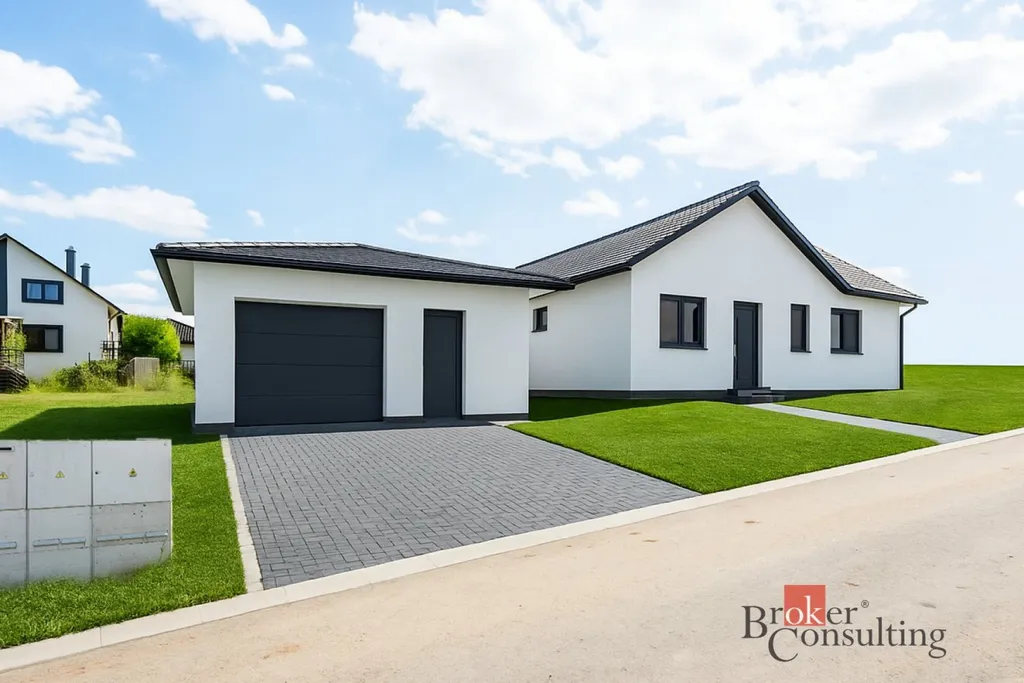 Nabízíme k prodeji moderní přízemní dům v dispozici 4+KK a užitné ploše 120 m² s dvojgaráží o velikosti 43 m² v klidné nové čtvrti Městečka Trnávka. Dům k dokončení dle kvalitního a úsporného projektu od DJS Architecture má již okna, zateplený strop, izolace podlah a tak stačí si už jen interiér zrealizovat podle svých představ. Odhadovaná cena dokončení jsou 2mil Kč.