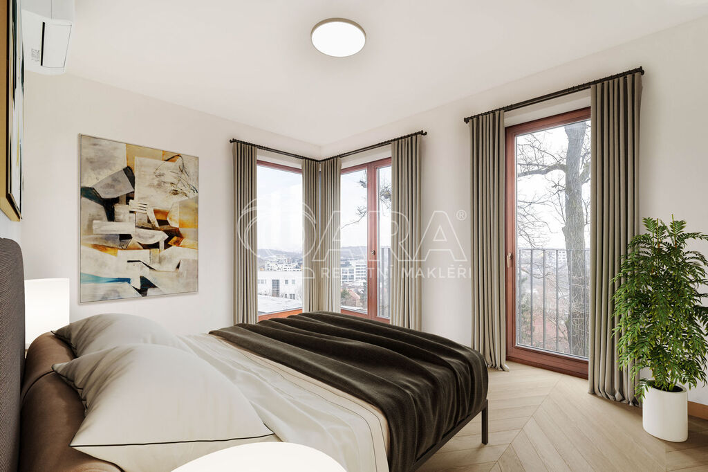 Představte si místo, kde každý den začíná a končí s dechberoucím výhledem, kde soukromí a půvab tvoří dokonalou symfonii s přírodou. Vítám vás v exkluzivním mezonetovém bytě o výměře 156,5m2, kde se architektonická bravura setkává s krásou přírodní památky parku Vidoule. Tento skvost je výsledkem mistrovské práce mar.s. architects, kteří stojí za projekty, které oslovují svět. S dřevem, kamenem a atypickými fasádami tvoří tento byt ve skutečnosti malý rodinný dům, umělecké dílo, které je zároveň vaším domovem.