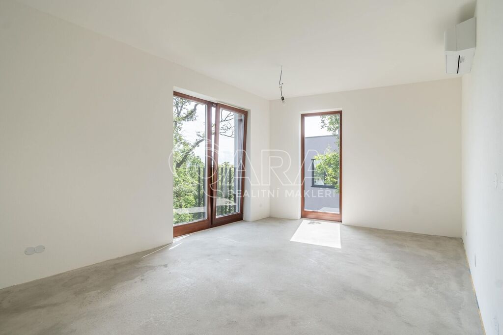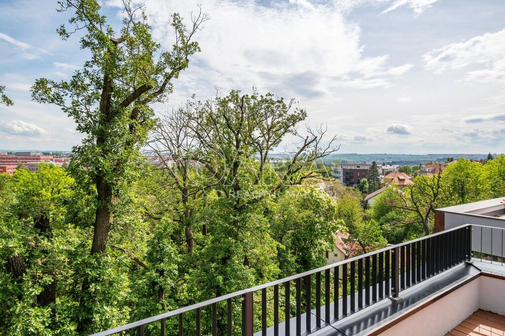 Avšak ta pravá kouzla se začínají dít o patro výš. Obývací pokoj, který je synonymem pro velkorysost a eleganci, se otevírá na terasu o rozloze 30 m2 s výhledem, který bere dech. Zde, nad korunami stromů, máte panoramatický výhled na Prahu a její okolí, což je zážitek, který se nikdy neomrzí. A pak je tu střešní terasa o ploše 50m2, vaše soukromá oáza pro relaxaci, zábavu nebo jednoduše pro chvíle klidu s rodinou. Na straně jedné s Prahou jako na dlani a zelení přírodního parku na straně druhé.