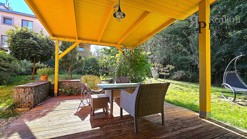 K bytu náleží zahrada o velikosti 256 m² (jste tedy vlastníkem), osázená vzrostlými keři a stromy, které poskytují maximální soukromí a příjemné místo pro odpočinek.