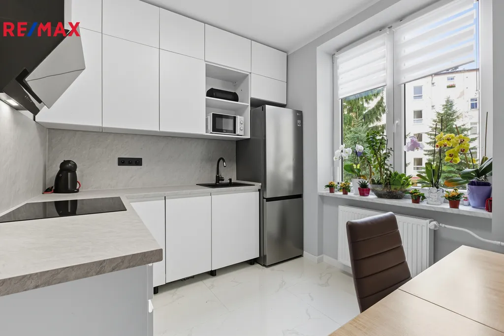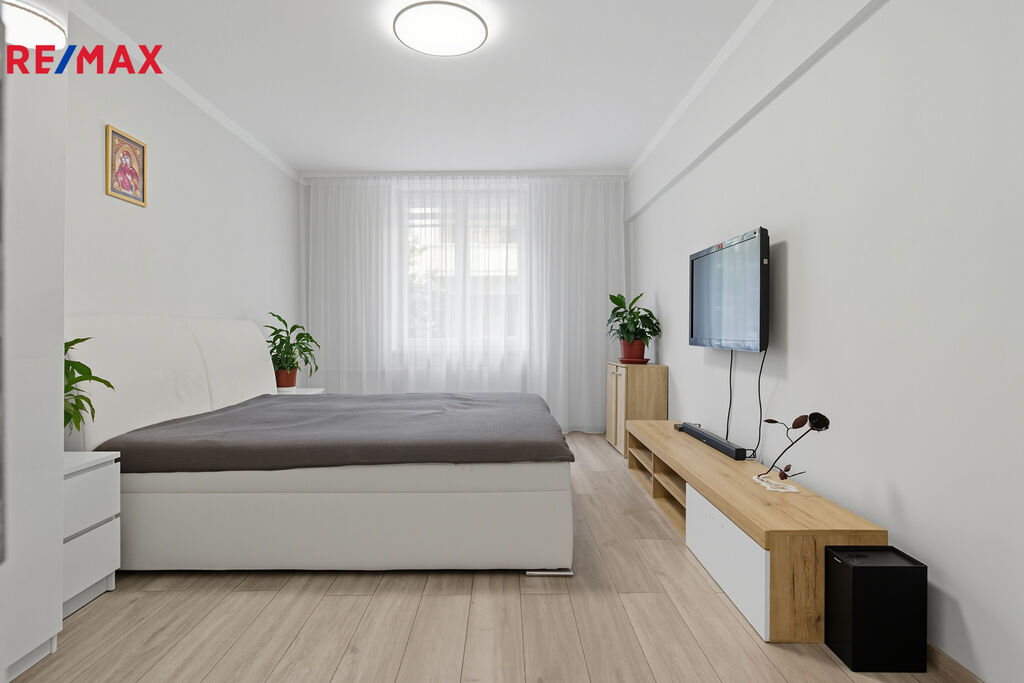 Dispozice bytu je prakticky řešena – prostorný obývací pokoj, samostatná kuchyně, ložnice a koupelna se sprchovým koutem. Díky rekonstrukci má byt moderní a světlý vzhled, je ihned připravený k nastěhování bez dalších investic. K bytu náleží také sklepní kóje.