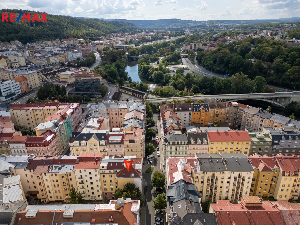 Výborná poloha zajišťuje plnou občanskou vybavenost v bezprostředním okolí – supermarket Lidl, zastávky MHD, školy i zdravotní služby. Do centra města dojdete za pár minut, lázeňská kolonáda je vzdálená přibližně 15 minut chůze.