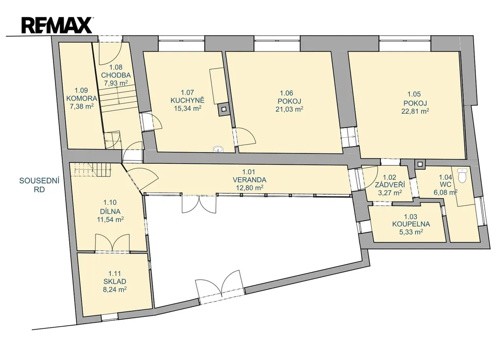 Dům je v původním stavu a čeká na rekonstrukci a právě v tom se skrývá jeho kouzlo. Díky své dispozici nabízí velký potenciál pro změnu uspořádání místností, ať už toužíte po moderním otevřeném obývacím pokoji s kuchyňským koutem, nebo po praktičtějším řešení pro rodinné bydlení s dostatkem úložných prostorů, vytvoření šatny/pracovny apod.