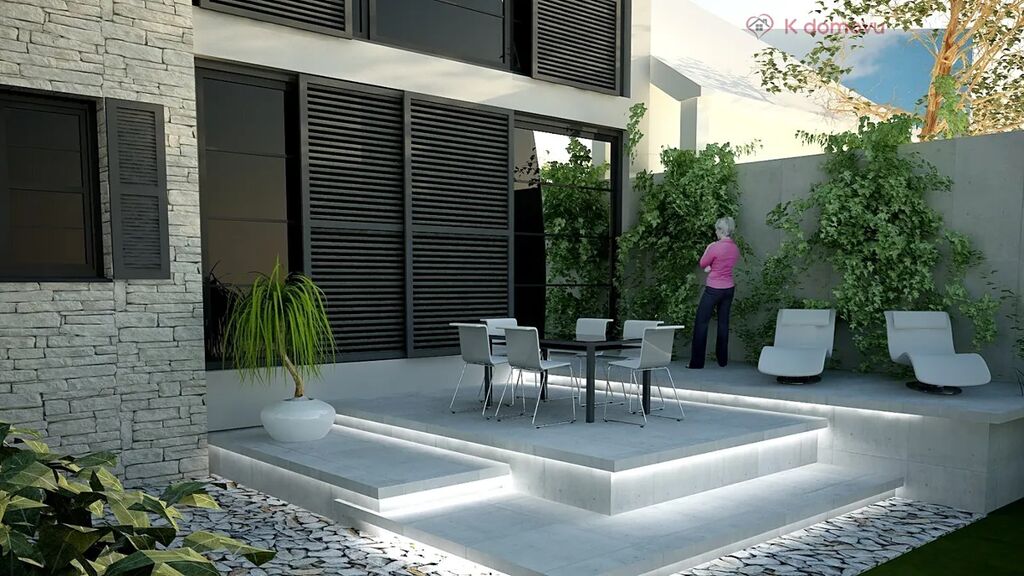 * Vytvoření komfortní terasy na dvorku objektu, ideální pro venkovní posezení a relaxaci.