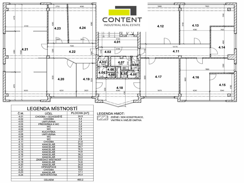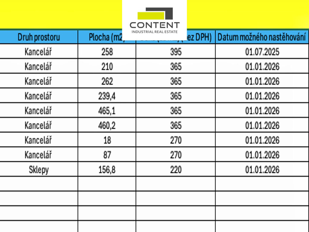 - v budově k pronájmu další kancelářské prostory 210m²- 465 m²,