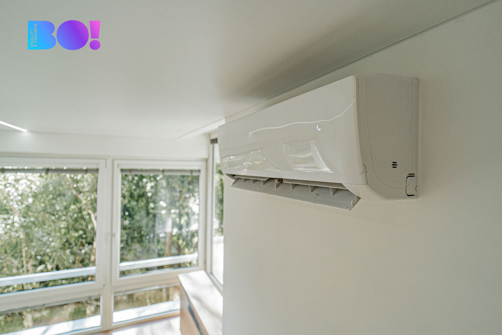 obývací pokoj s klimatizací propojený s moderní kuchyní