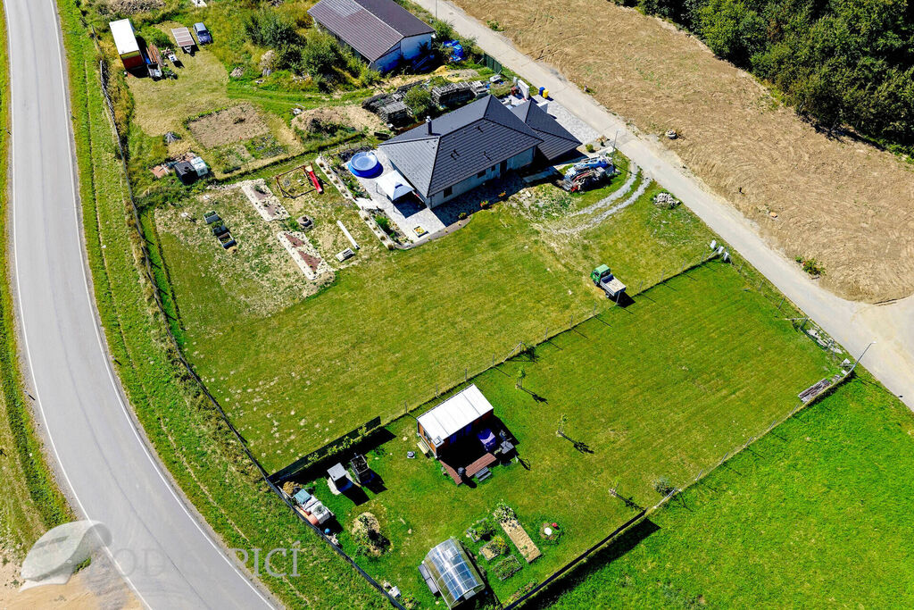 Pozemek dle územního plánu spadá do ploch „bydlení venkovského typu“, lze na něm postavit samostatně stojící rodinný dům. Parcela je mírně svažitá, nicméně přiložená vizualizace naznačuje, že vypořádat se s terénním uspořádáním nebude žádný problém. Přibližné rozměry obdélníkové parcely jsou 19x55m, veškeré inženýrské sítě jsou na hranici pozemku.