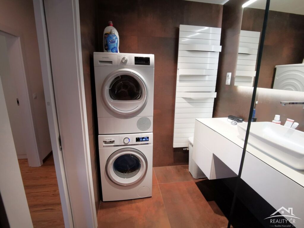 Prodej zánovního luxusního bytu o rozloze 94m2. Moderní bytová jednotka je svou atmosférou a nadstandardní kvalitou provedení s citlivým použitím materiálů sklo, kov, dřevo s důrazem na celkový pocit vzdušnosti a otevřeného prostoru velmi atypická a exklusivní. Ojedinělou koncepcí a charakterem výjimečnosti vyhoví i nejnáročnějším požadavkům současné doby a stylu. Vstupní hala, pracovna s terasou, ložnice, koupelna, toaleta, obývací pokoj s kuchyní 39m2 a terasou. Kuchyně vybavena nejvyšší řadou značkových spotřebičů Siemens, včetně parní trouby, prémiového značkového osvětlení od renomovaného rakouského výrobce, zabezpečovací systém, okna s ochranou proti rozbití, televizor 8K, aj. Parkovací místo v ceně. Financování s dalšími výhodami zajistíme. Více informací na telefonu.