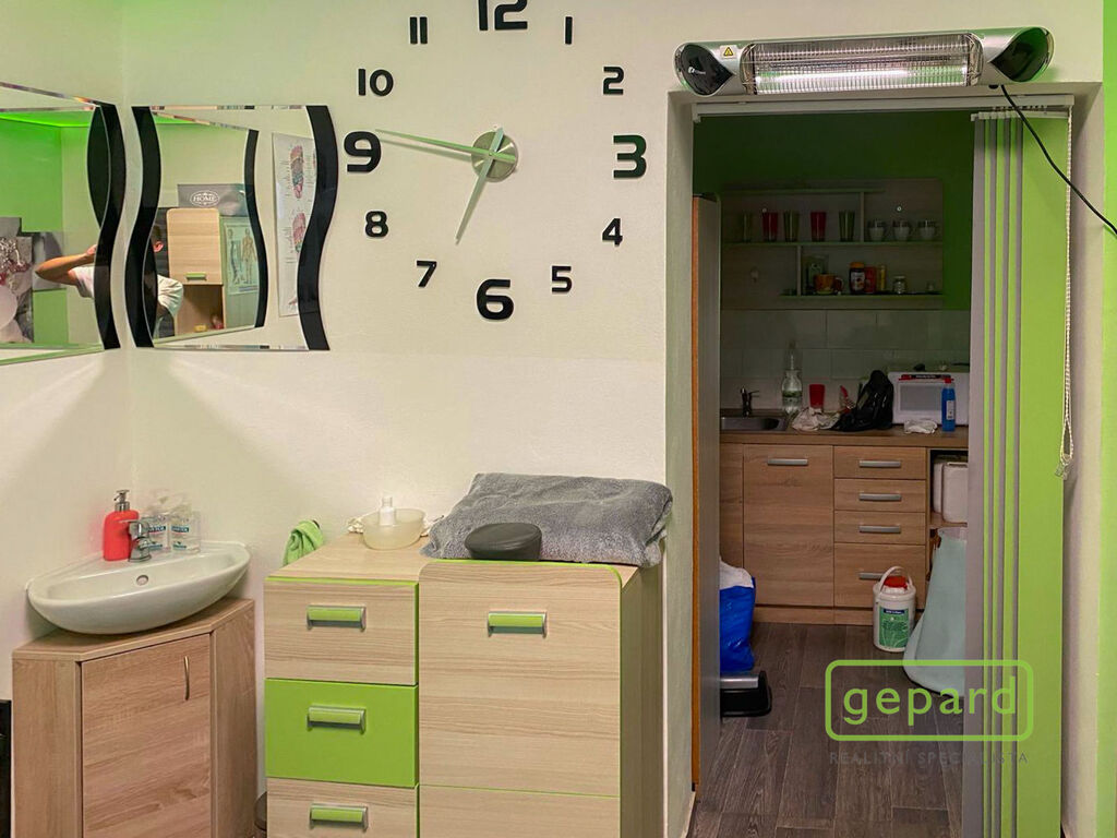 1. Komerční prostor – psí salón (21,9 m², pronajato, vstup z hlavní ulice)