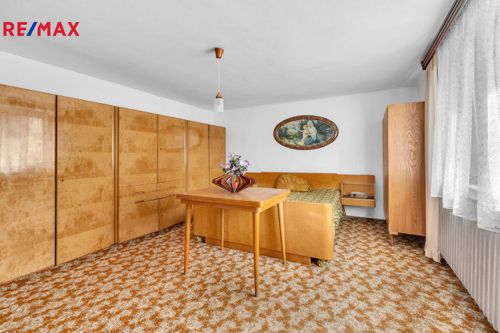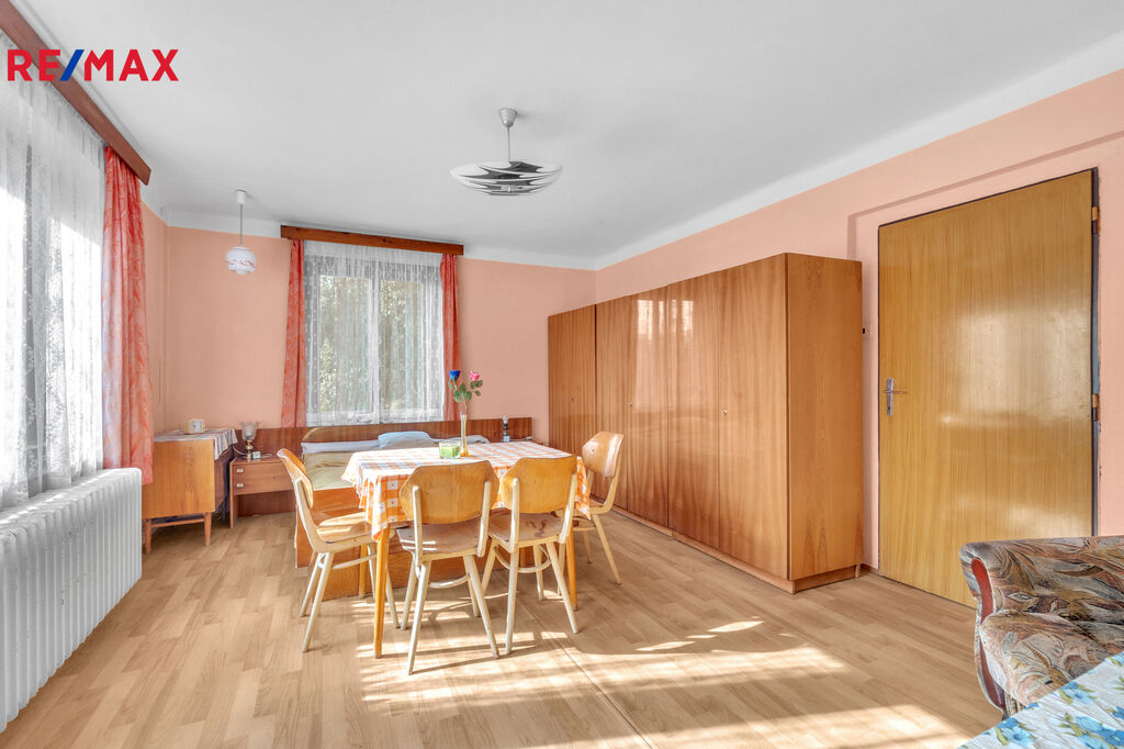 Dispozice: ložnice, obývací pokoj, koupelna, samostatné WC, chodba, pokoj, spíž, technická místnost a zádveří.