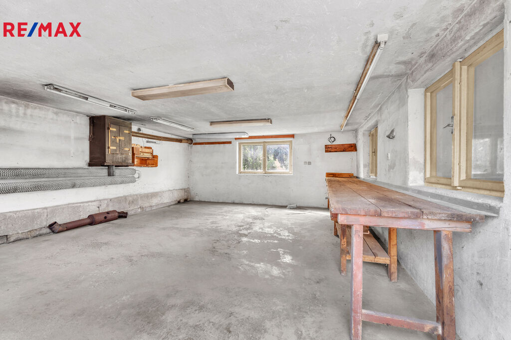 V zahradě se nacházejí další dvě zděné garáže (30 m² a 36 m² - do jedné garáže se vejdou dvě auta), které poskytují dostatek prostoru pro parkování nebo dílenské využití. Domy jsou určeny k rekonstrukci.