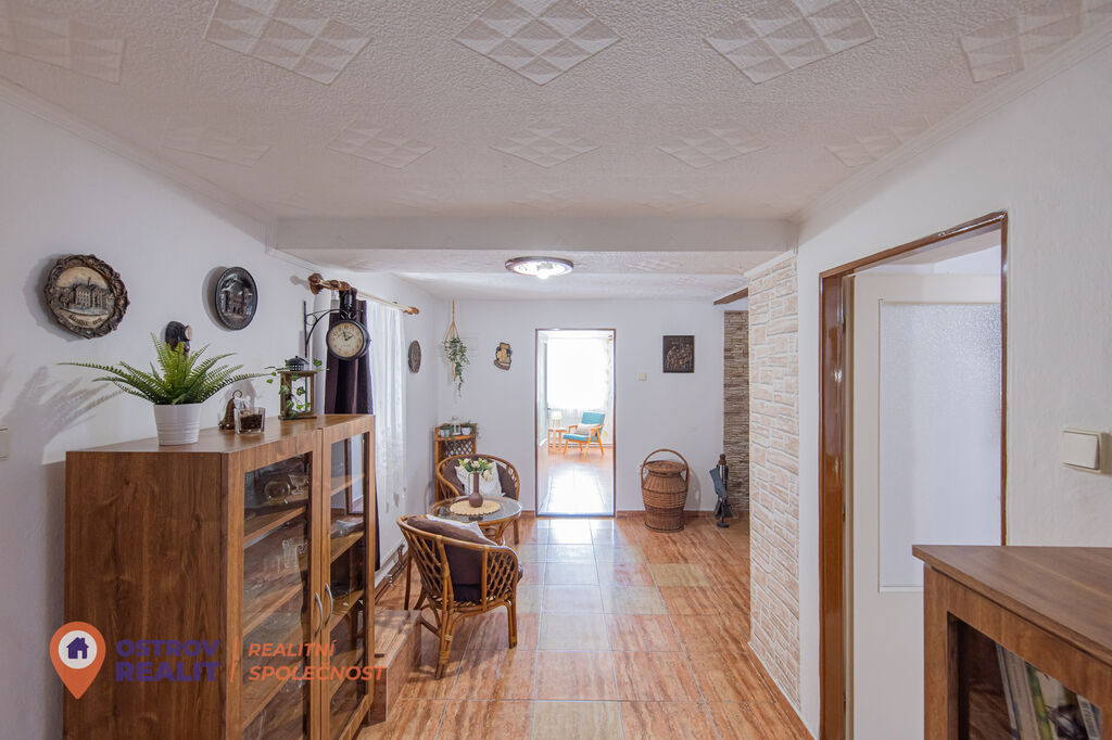 Ze vstupní verandy s dostatkem úložného prostoru se dostanete do prostorné chodby, zde najdete příjemné posezení u krbu. Krb vytváří útulnou atmosféru. Chodba nabízí volný prostor, který je vkusně využit jako odpočinkový kout s knihovnou a pohodlnými křesly – ideální místo pro relaxaci.