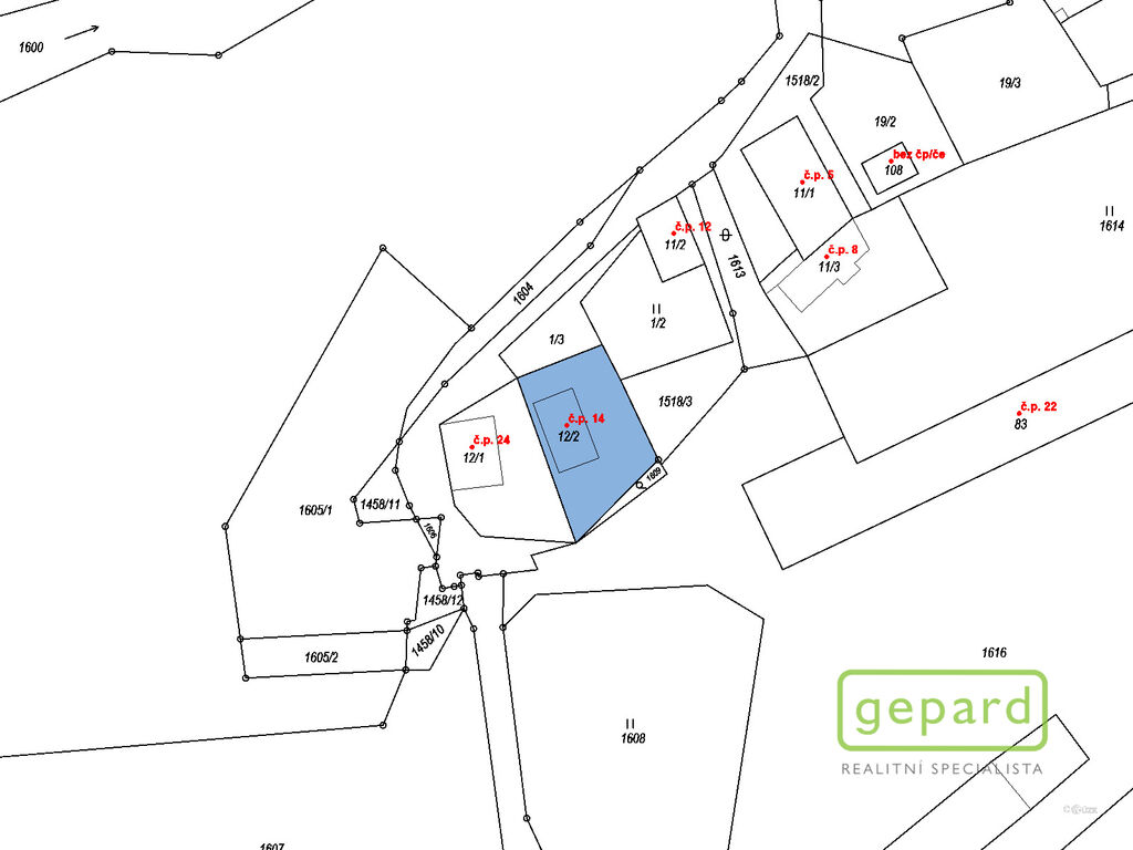 Celková plocha prodávaných pozemků má výměru 437m2, z čehož je zastavěná plocha této třípodlažní budovy 93m2.