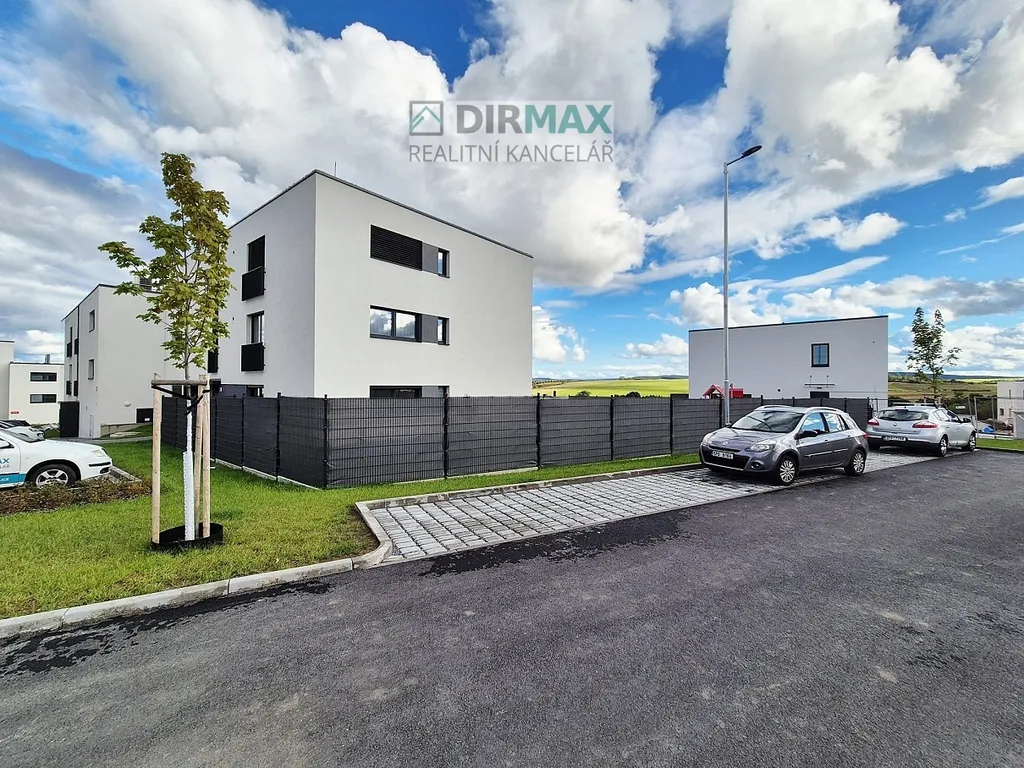 Byt se nachází v prvním podlaží třípodlažního nově postaveného bytového domu s výtahem. K bytu náleží ještě sklep o velikosti 2,5 m², který je přímo na patře, dále parkovací stání před domem.