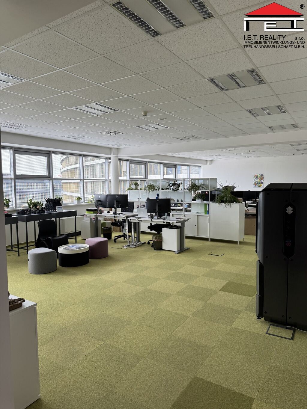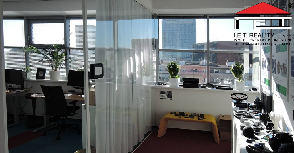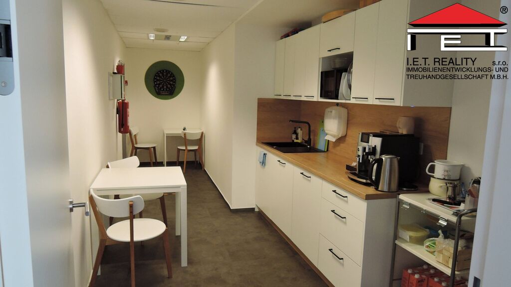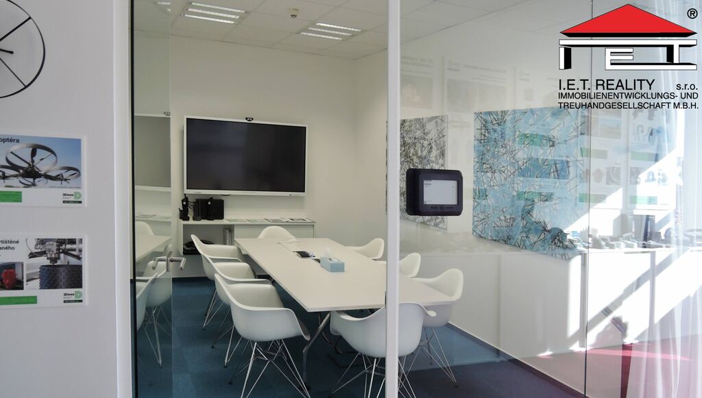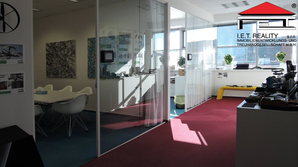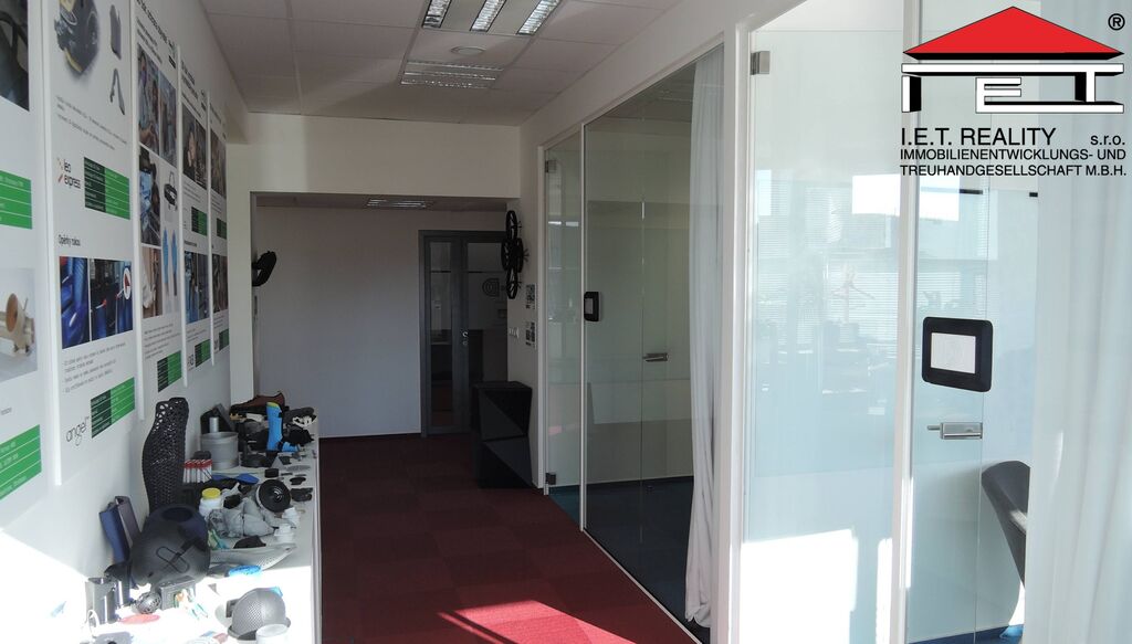 Kancelář se dispozičně skládá z 2 větších místnosti formou open office o výměře 201 m2 a uzavřené zasedací místnosti a menší kanceláře, dále pak z chodby a vlastní oddělené kuchyňky přímo pro tyto prostory. Prostory mají vlastní toalety, dámské i pánské. Prostory jsou připravené rovnou k nastěhování a jsou plně vybaveny. Poplatky za užívání kanceláří jsou 160 Kč/m2/měsíc, patří do nich i poplatky za spotřebu elektřiny.