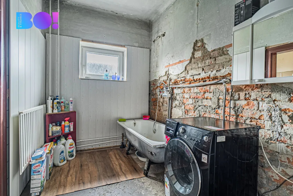 V přízemí domu jsou dva prostorné neprůchozí pokoje, vetší kuchyně a koupelna s wc. V patře pak tři pokoje a prostor pro vybudování menší kuchyně nebo koupelny. Podlahová plocha je 141m². Na domě proběhly menší úpravy - má nová plastová okna, je započata rekonstrukce koupelny. Zároveň má stavba původní prvky, jako je například historická dlažba v chodbách, původní vstupní dveře. Dům je cihlový, betonové podlahy v přízemí i patře. Je podsklepený. Napojený na veřejný vodovod, ale i na studnu. Přípojka plynu je na hranici pozemku. Topení kotlem na tuhá paliva a krbovými kamny.