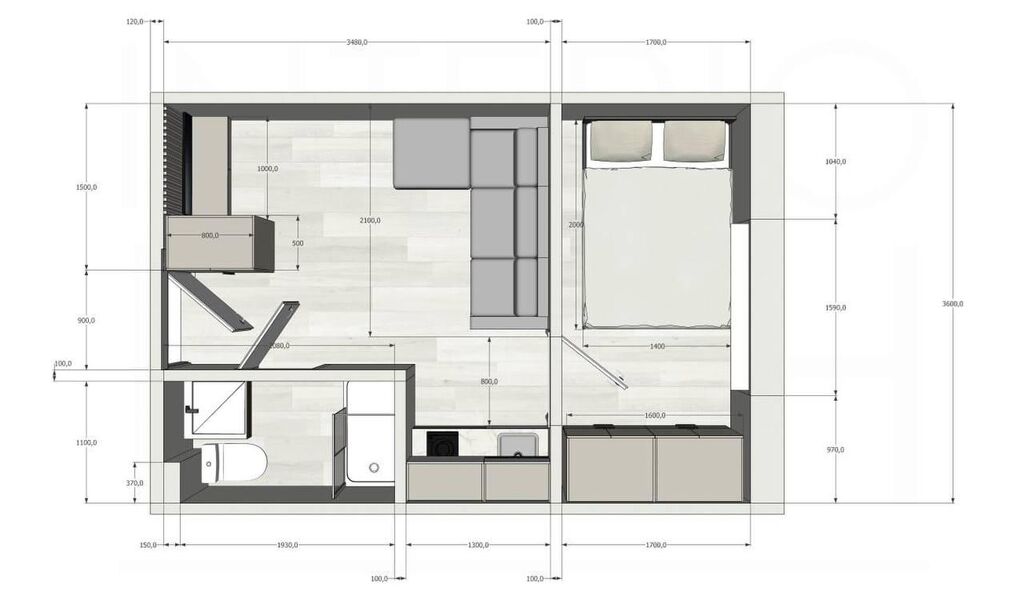 Byt je kompletně vybaven nábytkem i kuchyňskou linkou. Dispozice je prakticky řešená obývací pokoj s kuchyňským koutem, ložnice, koupelna se sprchou a WC.