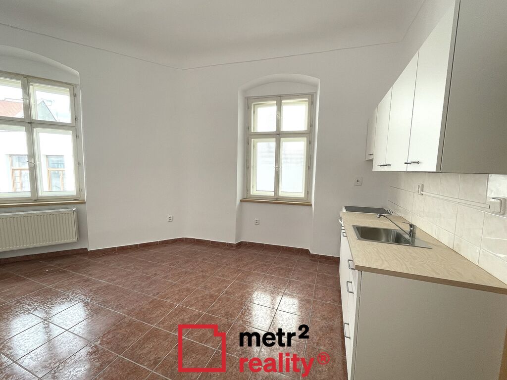Nabízíme Vám k pronájmu podkrovní bytu 2+kk na Dolním náměstí ve dvorním traktu, orientovaný do ulice Uhelná. Byt o výměře 45 m2 se nachází v cihlovém domě ve 3 patře bez výtahu. Byt sestává z obývacího pokoje s kuchyňským koutem, ložnice, koupelny s vanou a samostatné WC. Byt se pronajímá nevybavený, pouze kuchyňská linka, elektrický sporák s elektrickou troubou. Výše nájmu je 12.000 Kč + 1.300 Kč služby za měsíc + plyn 1.800 Kč měsíčně + elektřina, kterou si nájemník přepíše na sebe. Byt je volný ihned. PENB ,,G“ nebyl nedodán.