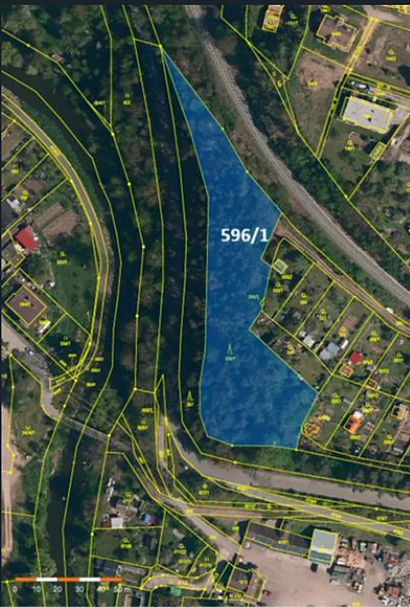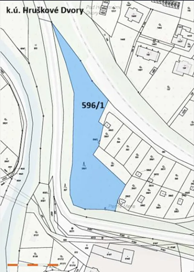 Jedná se o prodej spoluvlastnického podílu o velikosti id. 6/8 lesního pozemku p.č. 596/1 o výměře 4922 m2, který je ve spoluvlastnictví s fyzickou osobou. Pozemek se nachází ve svahu podél komunikace a navazuje na oblast chatové zástavby.