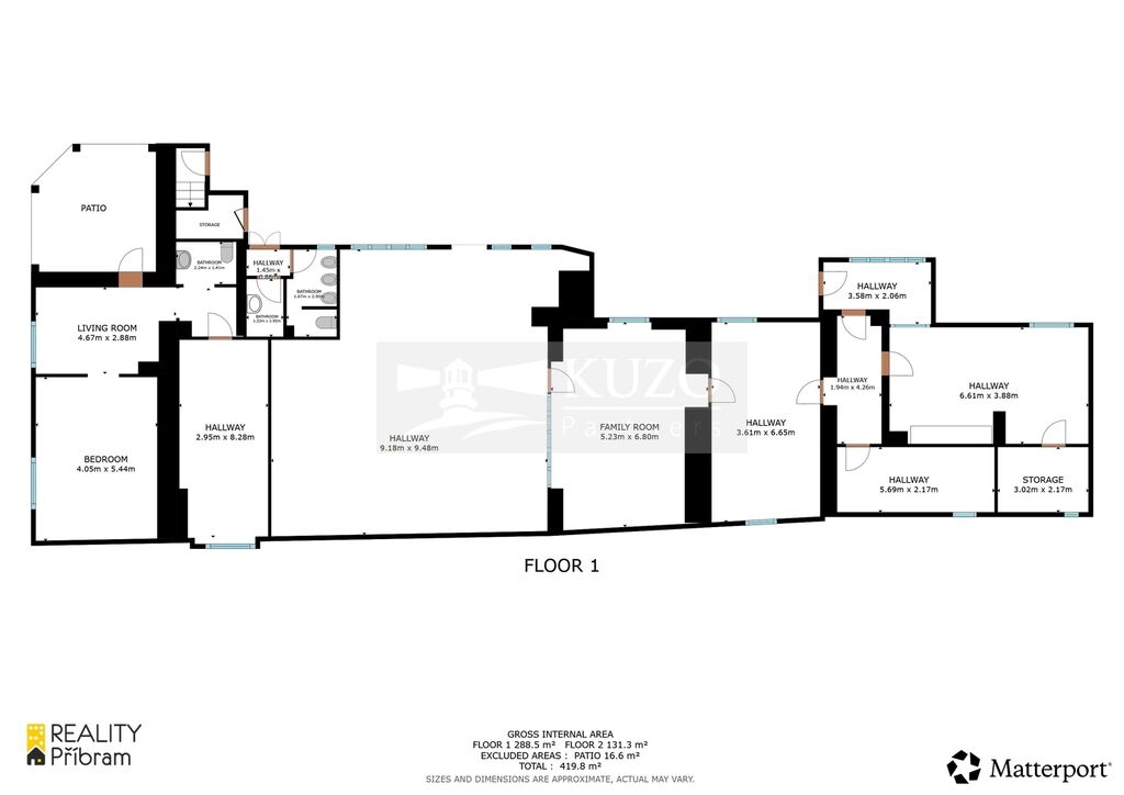 • Hlavní budova: Přízemí o rozloze 289 m² a prostorný byt 4+1 v prvním patře (131 m²).