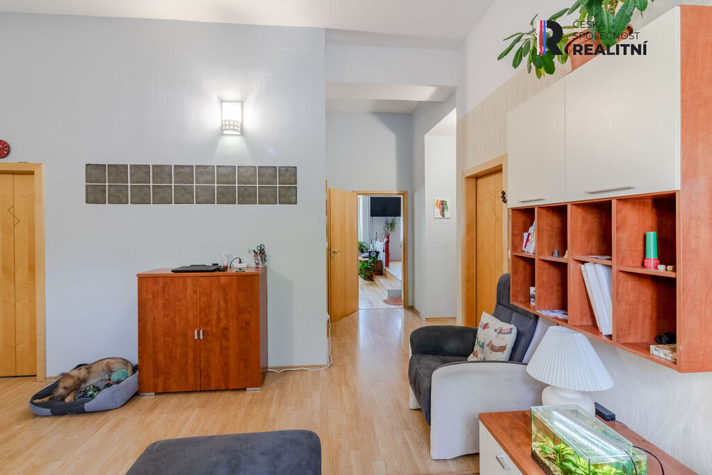 Byt nabízí velkorysou dispozici vhodnou pro rodinné i reprezentativní bydlení. Obytný prostor s dispozičním řešením, které umožňuje pohodlné členění na společenskou a soukromou část. Moderní provedení interiéru lze upravit dle individuálních potřeb a představ nového majitele. Úpravou stávajících či výstavbou nových vnitřních příček, lze byt rozšířit o další ložnici.