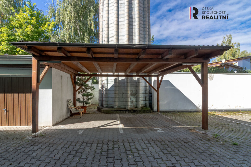 K bytu se nabízí garáž pro dvě vozidla za sebou, která poskytuje nejen bezpečné parkování, ale i dostatek prostoru pro uskladnění. Nadstandardně je k dispozici také venkovní kryté stání pro další dvě auta, což zajišťuje parkovací komfort pro celou rodinu nebo návštěvy. Dále je možno využívat venkovní část dvora, která je sdílena jen se třemi vlastníky dalších bytů.