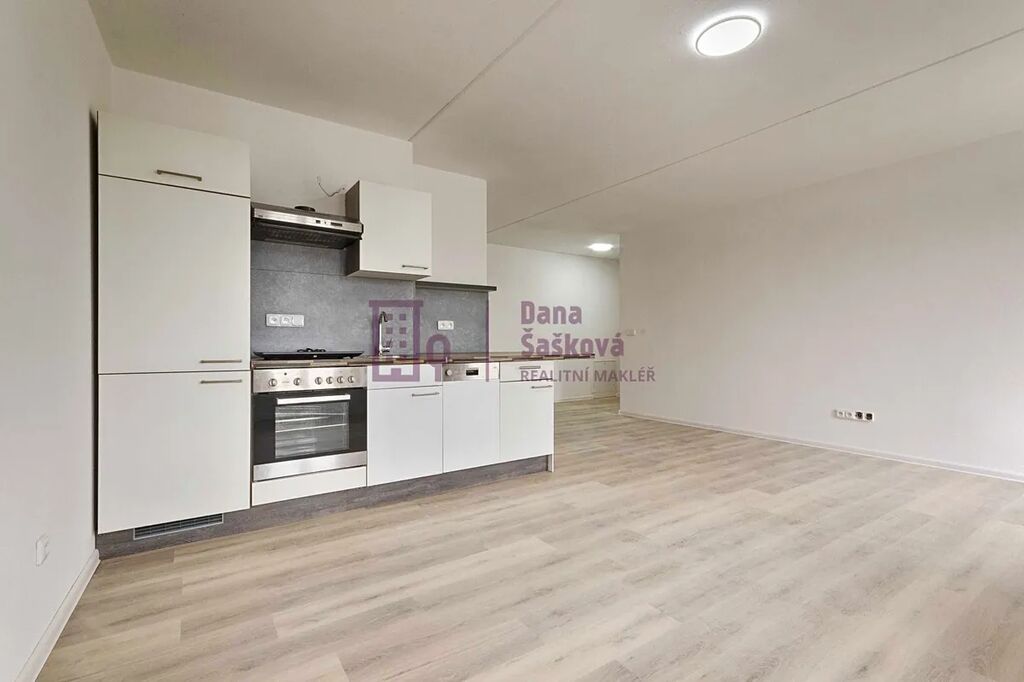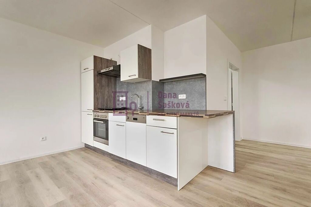 Byt je vybavený kuchyňskou linkou s elektrickou troubou, varnou deskou, myčkou a digestoří.