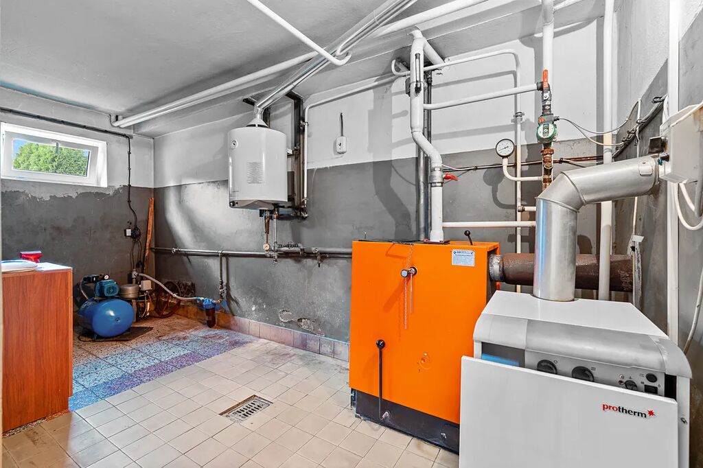 Dům je napojen na obecní vodovod, kanalizaci, elektrickou energii a plyn + kotel na tuhá paliva.