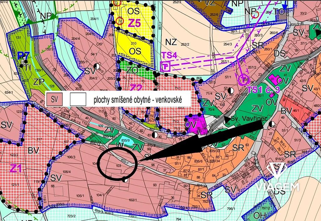 Tento pozemek je zapsán na LV 91 s parcelním číslem 103 o celkové výměře 513 m².